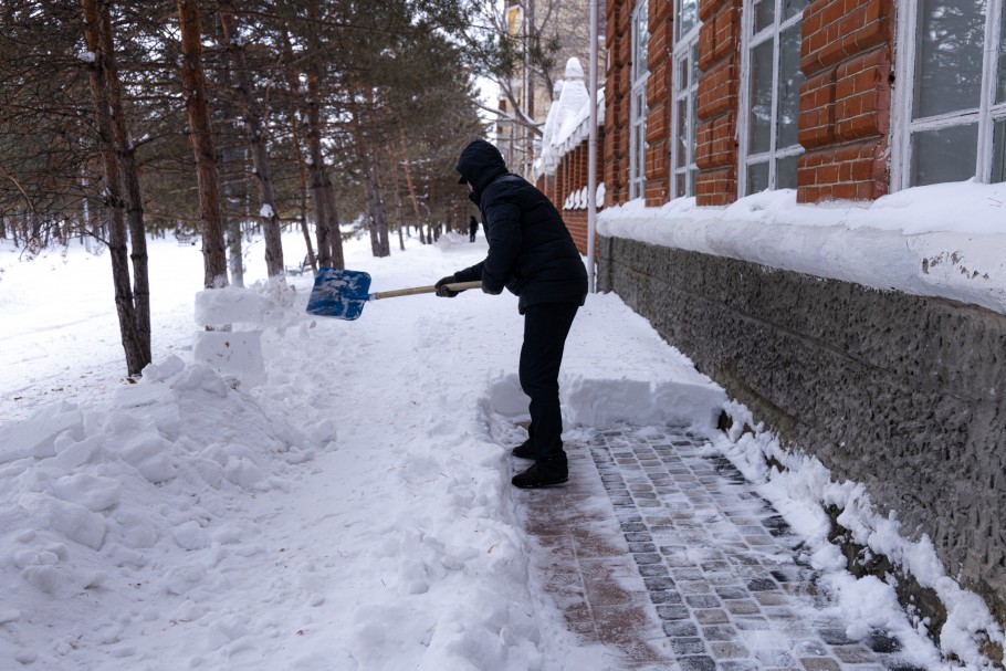 Снег возле Костанайского областного историко-краеведческого музея на протяжении 10 лет убирает Айтумхан Курмангали.