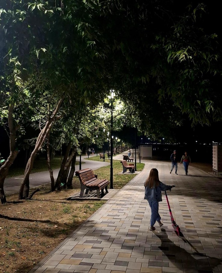 — В нашем любимом триатлон-парке всегда особая атмосфера. Здесь красиво в любое время дня, но вечером парк особенно преображается: мягкий свет фонарей, отражения в воде и яркие краски цветов создают невероятную гармонию. Можно заняться спортом, прогуляться по живописным дорожкам, а дети с радостью проводят время на многочисленных площадках и аттракционах. Мы часто приходим сюда всей семьёй, гуляем по новой набережной, дышим свежим воздухом и просто наслаждаемся уютом и красотой этого места, — написала Екатерина Стрельчук.