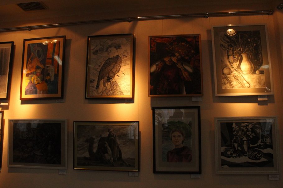 Среди работ можно увидеть пейзажи, натюрморты, портреты, выполненные акварелью, маслом, простым карандашом.