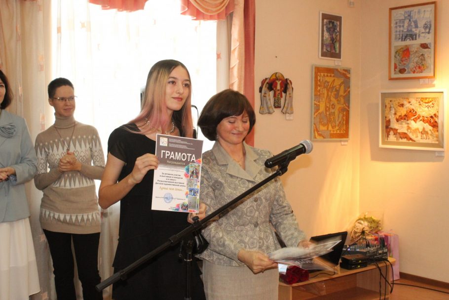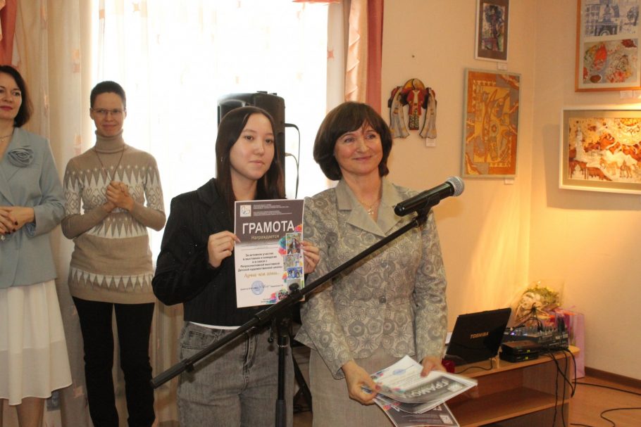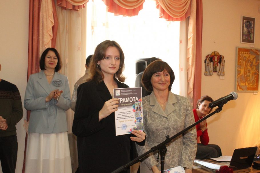 Также на открытии выставки прошла церемония награждения. Среди награжденных были две девушки, занявшие первые места в международном конкурсе в Японии.
