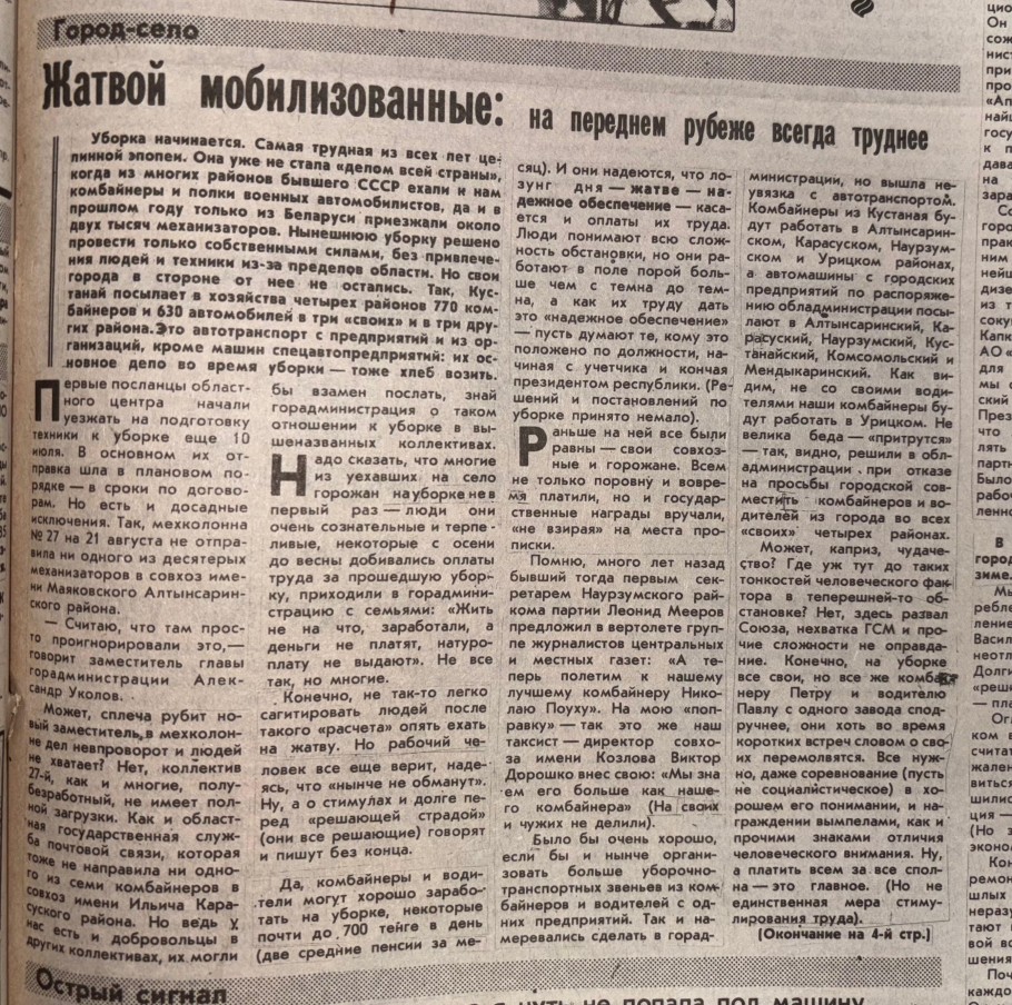 В прошлом году к нам приезжали механизаторы из многих районов бывшего СССР, только из Беларуси — около двух тысяч. А вот в 1994 году решили справляться своими силами, — пишет корреспондент газеты «К».
