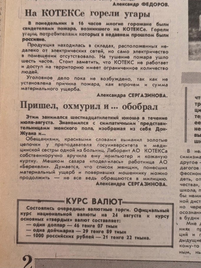 Таким был Костанай в августе 1994 года. Эти газетные страницы не найти в интернете — но они хранят живую историю города, которую мы будем и дальше открывать для наших читателей.