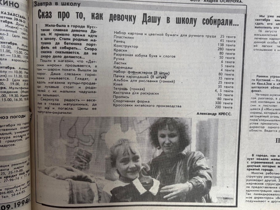 Мы открываем подшивку газеты «Костанай» (ныне «Наш Костанай») за 27 августа 1994 года. Пожелтевшие страницы, крупные заголовки и совсем другой ритм времени. Давайте перелистаем номер вместе и посмотрим, чем жил город 31 год назад.
