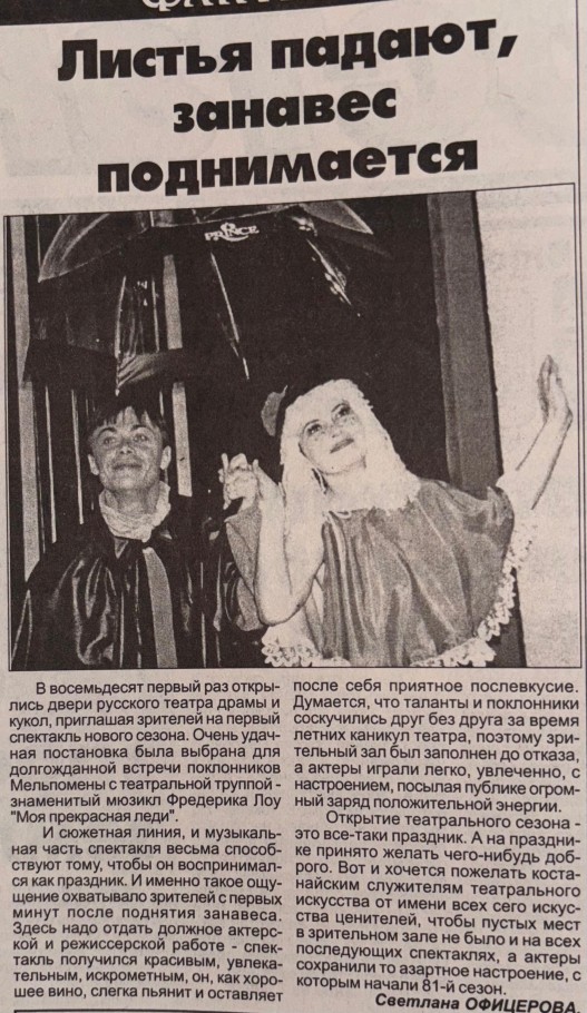 Русский драмтеатр в те дни уже начал новый сезон. В 2002 году его открытие состоялось в сентябре, а вот сейчас торжества планируются на октябрь. Зато в сентябре 2025 года в Костанае проходит настоящий праздник искусства — Международный фестиваль театров кукол Kostanay Puppet Life, приуроченный к 40-летию областного театра кукол. На фестиваль приехали 10 коллективов из шести стран — Китая, Ирана, Перу, России, Узбекистана и Казахстана. А стартовало культурное событие шествием ростовых кукол и артистов на ходулях.