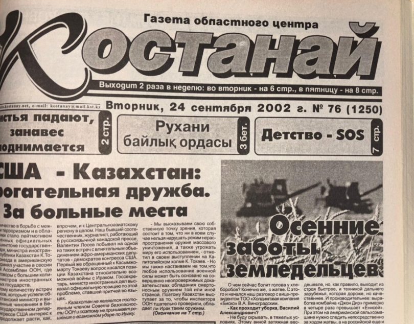 На страницах газеты «Костанай» (ныне — «Наш Костанай») от 24 сентября 2002 года мы нашли немало интересного. Сегодня вместе с вами перелистаем старые полосы и вспомним, чем жил наш город и страна чуть больше двух десятилетий назад.