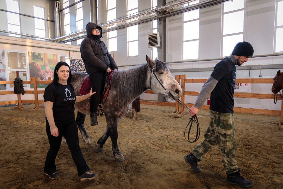 — У нас три лошади: Рыжик, Баруша и Султан. Все они подходят для иппотерапии: спокойные, привитые, чистые и подготовленные к работе с детьми, в том числе с инвалидностью. Сначала лошади работают со здоровыми всадниками, проходят необходимый период адаптации. Важно, чтобы они были устойчивыми, спокойными, здоровыми, с правильным шагом и активным аллюром — полностью готовыми к терапии, — отмечает инструктор.