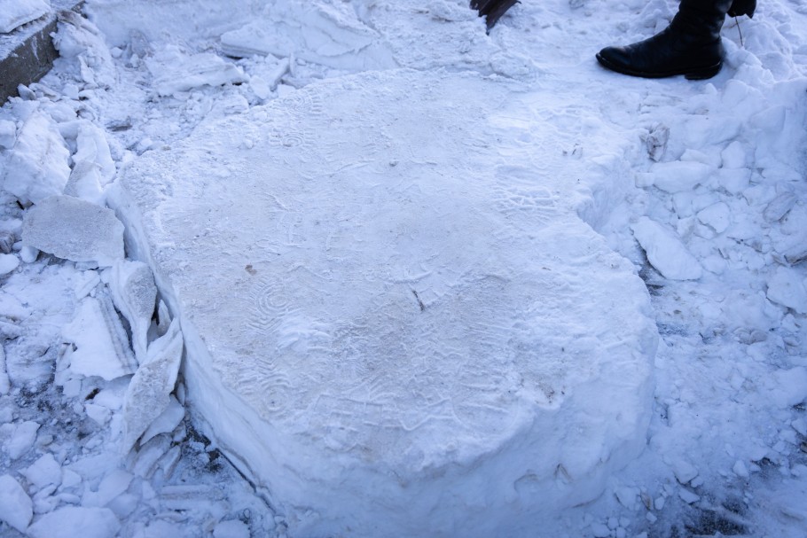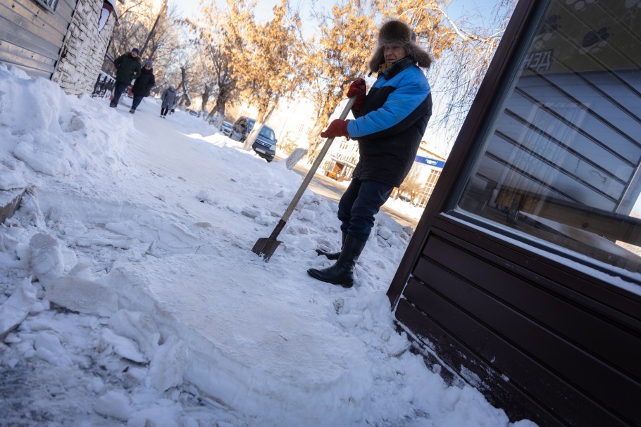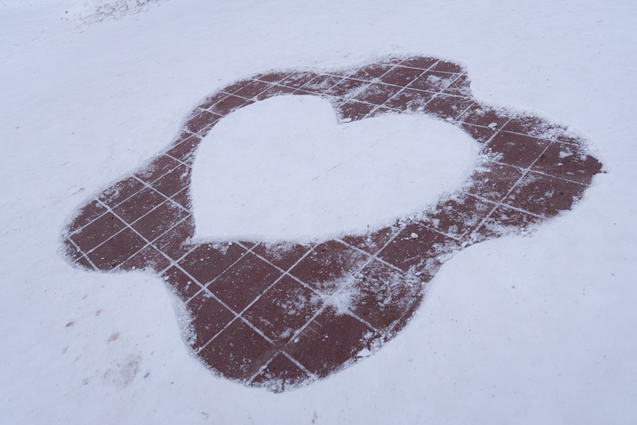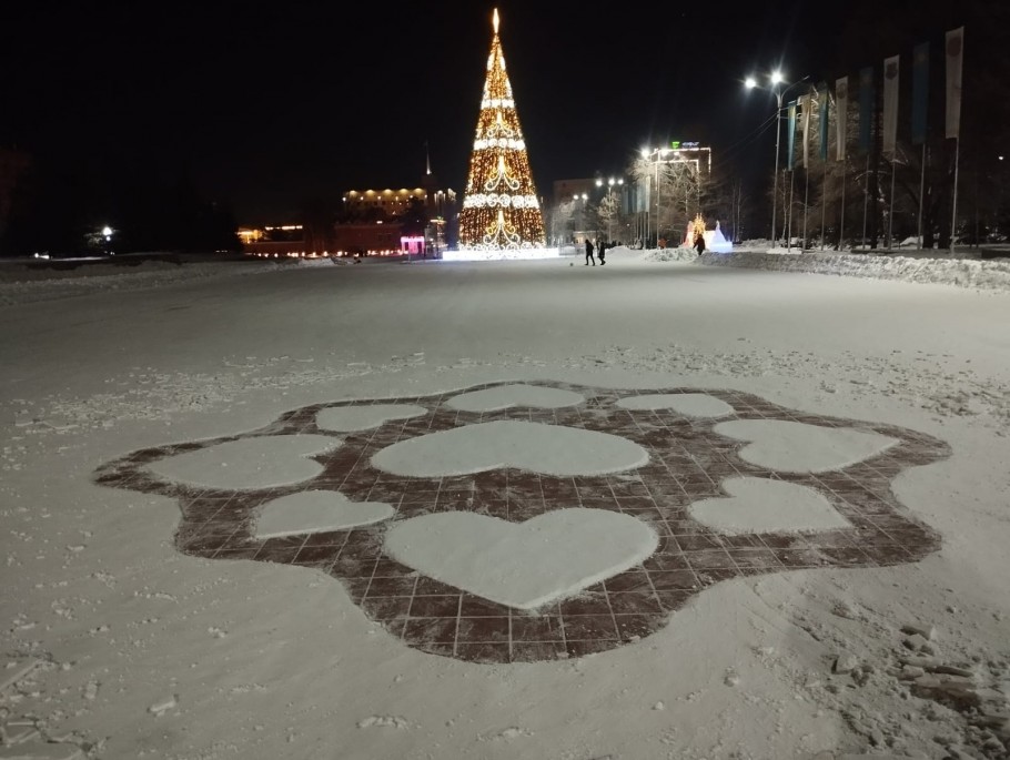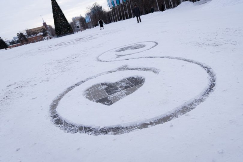 На остановке ЦОН по улице Тәуелсіздік, сгорбившись, долбил снег небольшого роста мужчина. Лицо было скрыто большой лохматой шапкой. Пассажиры, ожидающие свой автобус, то и дело оборачивались на него и с интересом наблюдали за странной работой. Мужичок не обращал ни на кого внимания и прямо на тротуаре творил маленькое чудо. Штыковой лопатой, словно кистью, он рисовал сердечко.