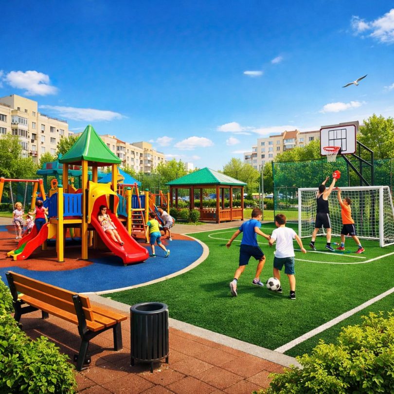 Жобада спорттық және балалар алаңдарын толықтай жаңарту қарастырылған. Жоспарда ескі жабындарды жаңа тартан жабындысымен ауыстыру, жасанды шөп төсеу және футбол қоршауларын қалпына келтіру көзделген. Сондай-ақ, баскетболға арналған жабдықтар: тіректер, тақталар және сақиналар жөнделеді.
