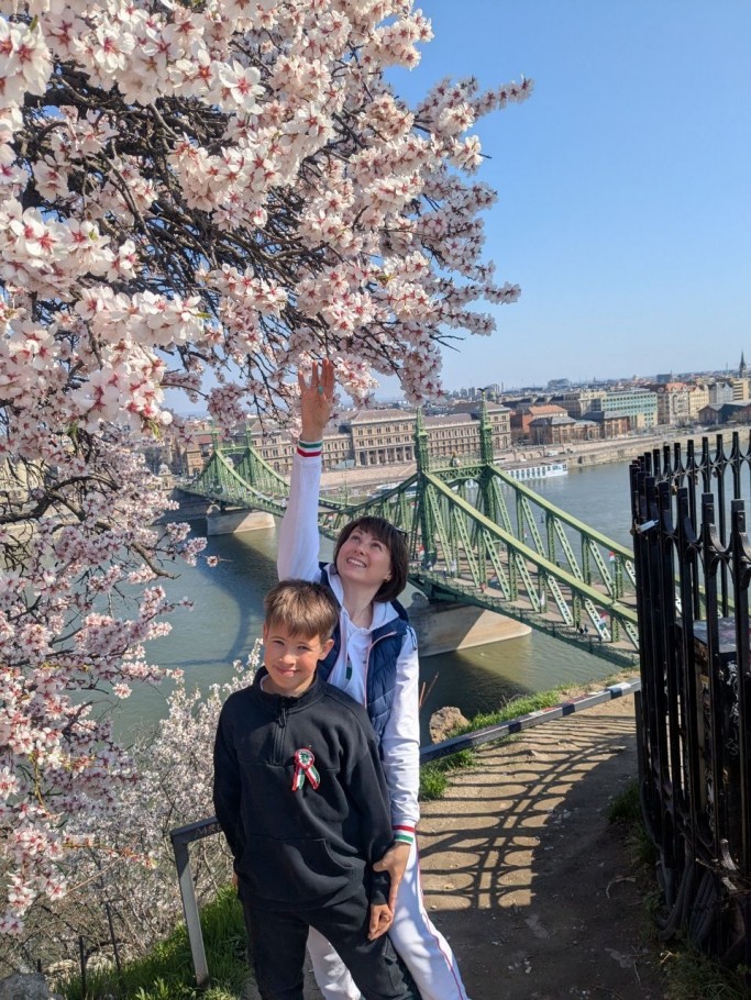 Юлия каждый год записывала видеопоздравления с Наурызом для казахстанцев. А в этом году вместе с сыном они сделали фотооткрытку на фоне цветущего миндального дерева в Будапеште.