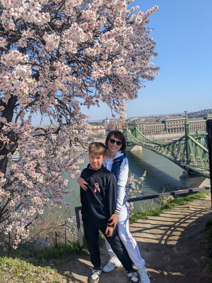 Юлия каждый год записывала видеопоздравления с Наурызом для казахстанцев. А в этом году вместе с сыном они сделали фотооткрытку на фоне цветущего миндального дерева в Будапеште.