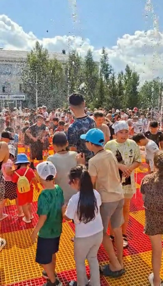После обратного отсчёта стартовала подача воды, и первые потоки обрызгали ожидавших чуда ребятишек.