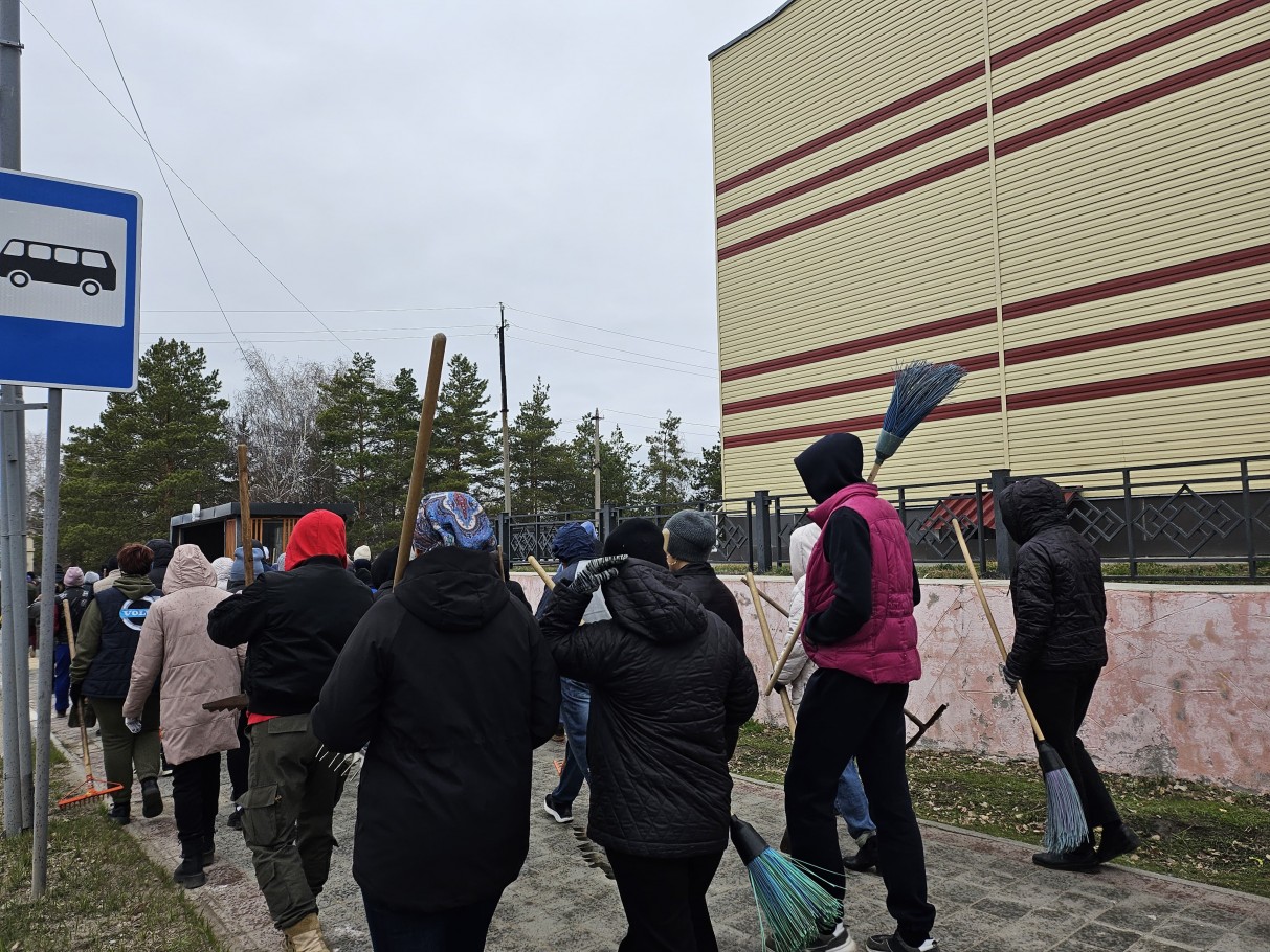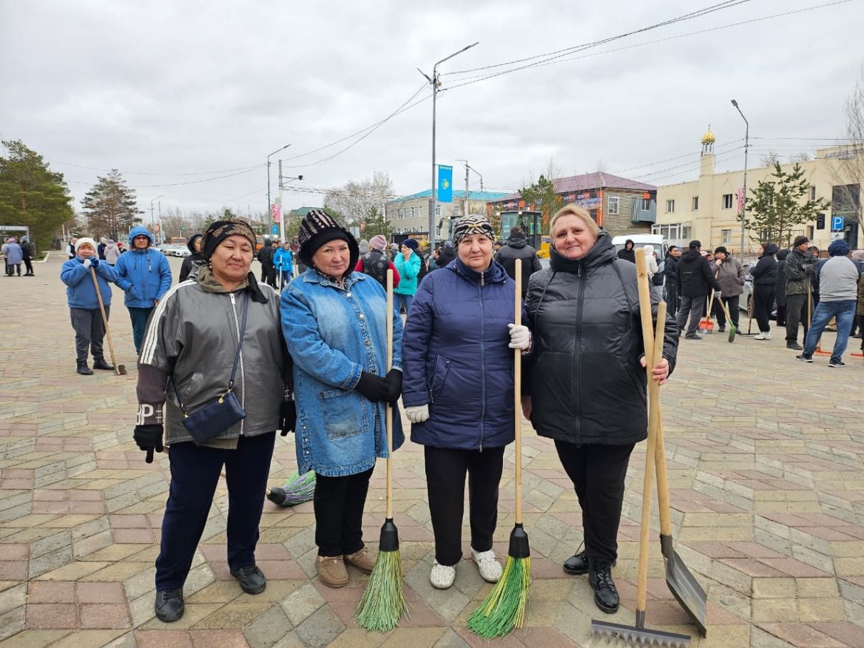 Представители организаций и учреждений Костанайского района 10 апреля собрались на площади напротив Дома культуры «Алтын дән», чтобы стартовать отсюда на уборку местности.