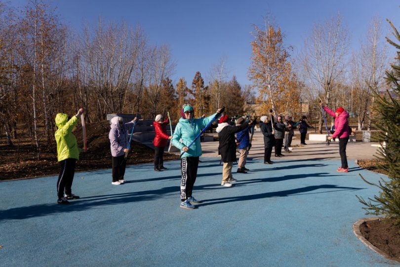 – Мы встречаемся два раза в неделю. Раньше собирались в других парках и скверах, а теперь будем заниматься здесь — покрытие хорошее, свежо и чистенько, – рассказала руководитель проекта долголетия Татьяна Александровна.