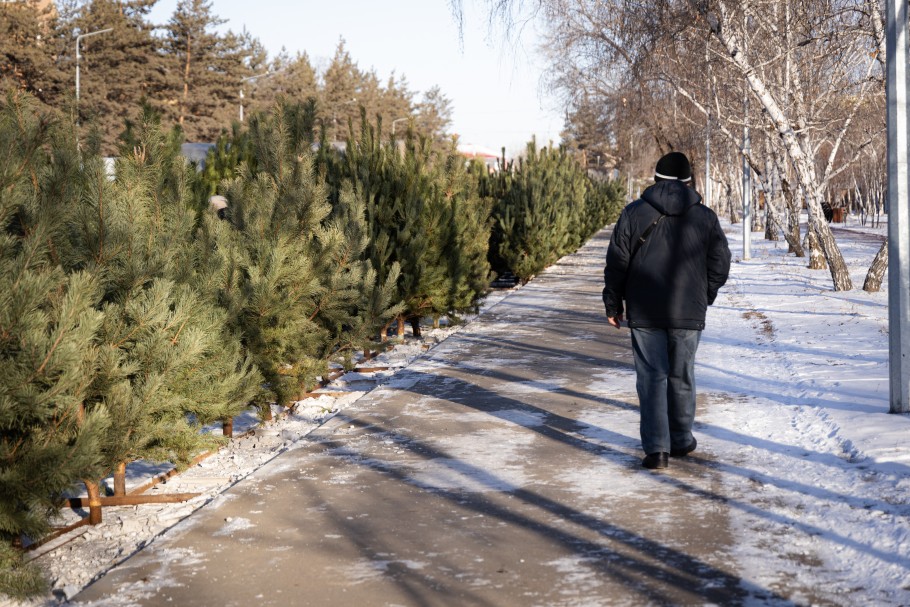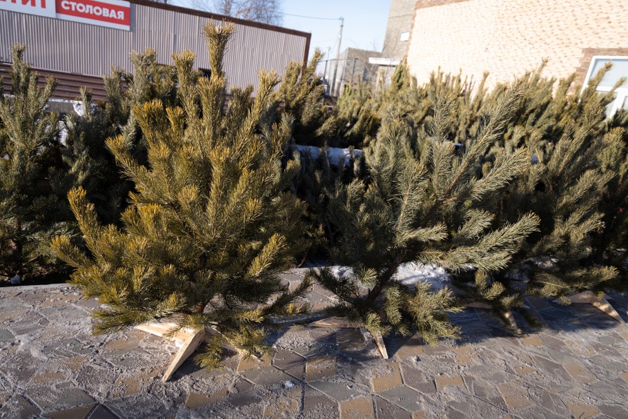 Улица Арыстанбекова – традиционное место торговли соснами. Здесь деревья стоят от 6 до 15 тысяч тенге. Для организаций доступны крупные экземпляры по 50 тысяч тенге – их привозят специально на заказ.