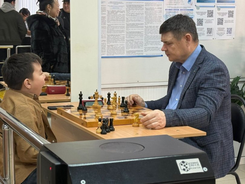 Внутри тоже праздничная атмосфера: на столе бауырсаки и горячий чай, а на скрипке исполняют знакомые всем мелодии. Рядом расположен шахматный стол для тех, кто хочет занять руки после голосования.