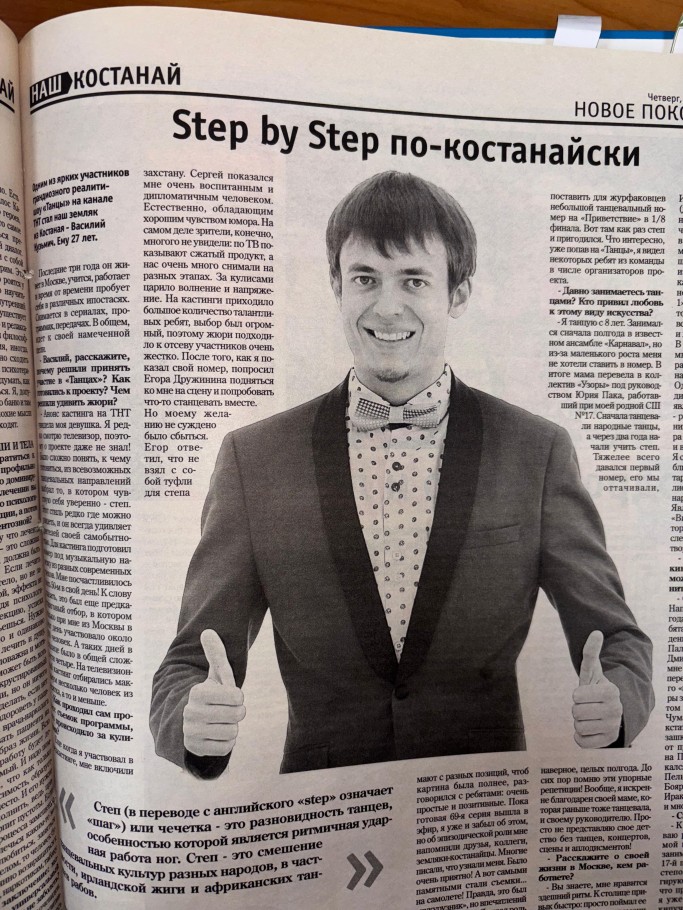 В номере от 6 ноября 2014 года мы нашли интервью с танцором по имени Василий Кузьмич. Тогда, в возрасте 27 лет, он принял участие в шоу «Танцы» на ТНТ. В интервью он рассказал, что планирует переехать в Россию и покорить столицу. Мы нашли его страничку в Инстаграм в 2025 году и увидели, что наш земляк исполнил мечту: живет и работает в Москве, причем в творческой сфере – ведущим мероприятий.