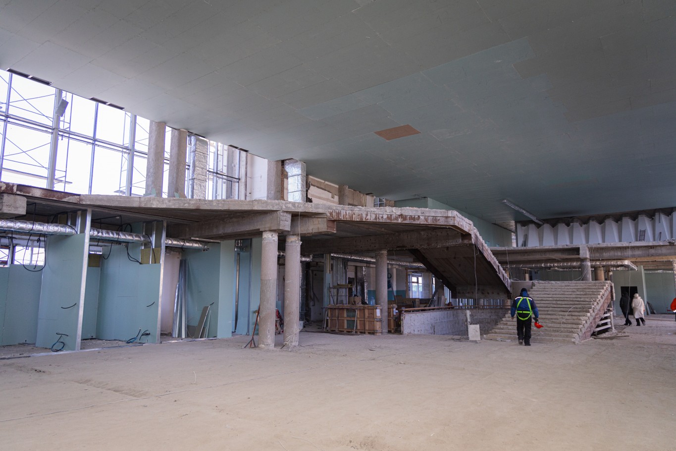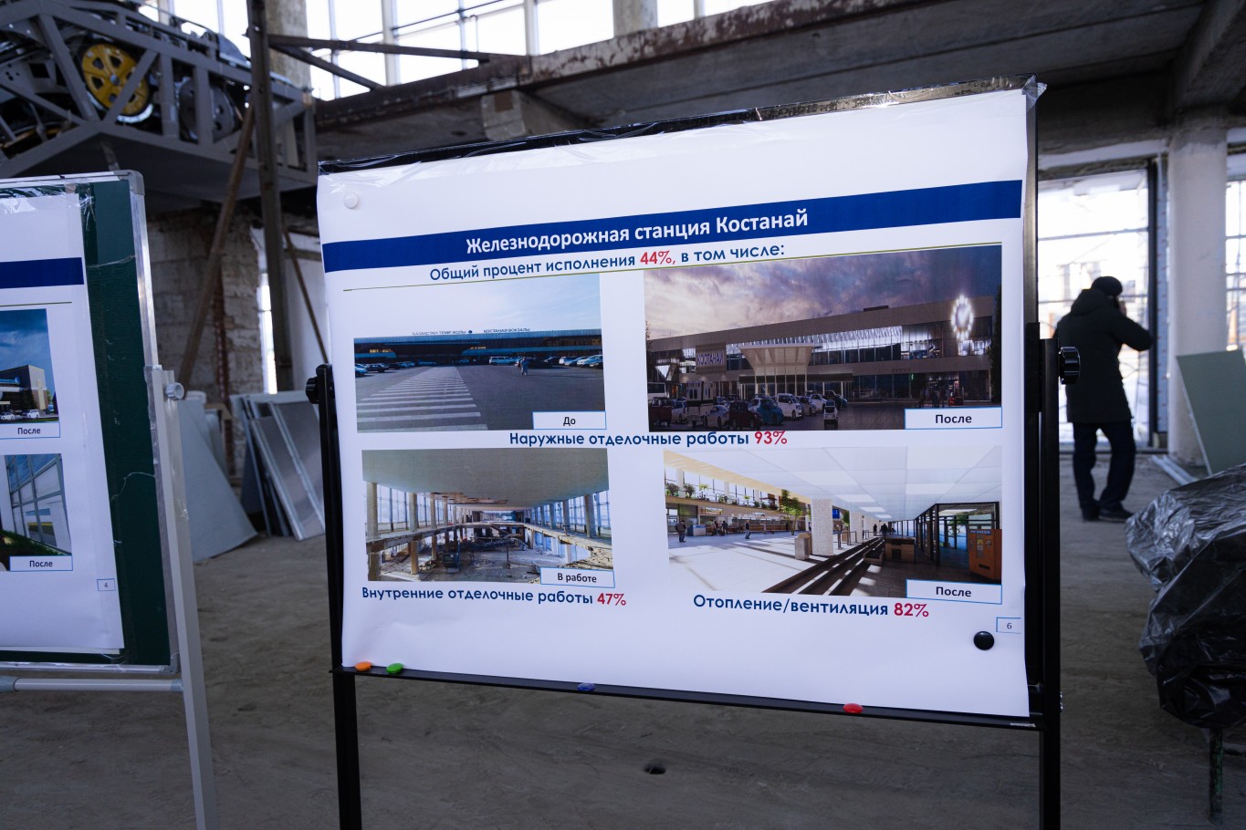 — Все процессы идут в соответствии с утвержденным графиком. Практически на 100% выполнен демонтаж старых конструкций. Сейчас ведется подшивка потолка, установка оконных блоков, работы по фасаду. В целом по объекту выполнено около 44% от запланированного объема, — говорит менеджер дирекции по модернизации вокзального хозяйства КТЖ Владимир Никкель.