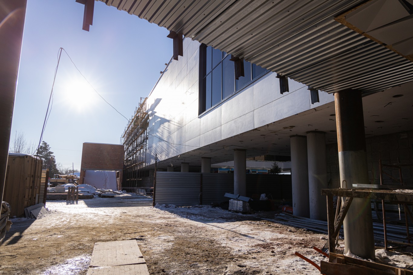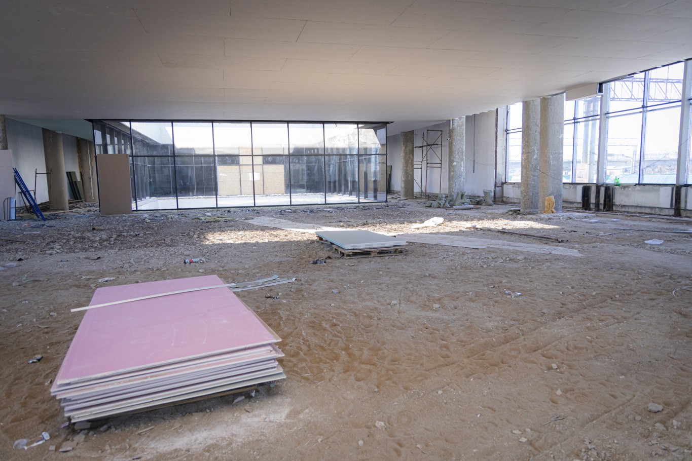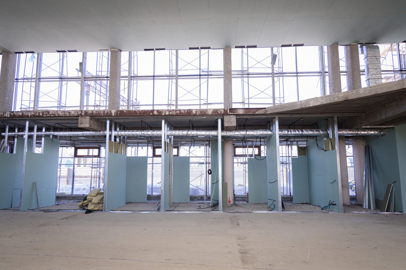 — Черновую работу, можно сказать, мы уже закончили. Осталось решить, как будет выглядеть потолок. В подвале уже 90% черновых работ сделано. На втором этаже черновые работы тоже почти закончены. Сейчас идет остекление. 80% фасада уже сделано. Внутренние работы тоже успеваем выполнять по графику, — отметил представитель подрядчика.