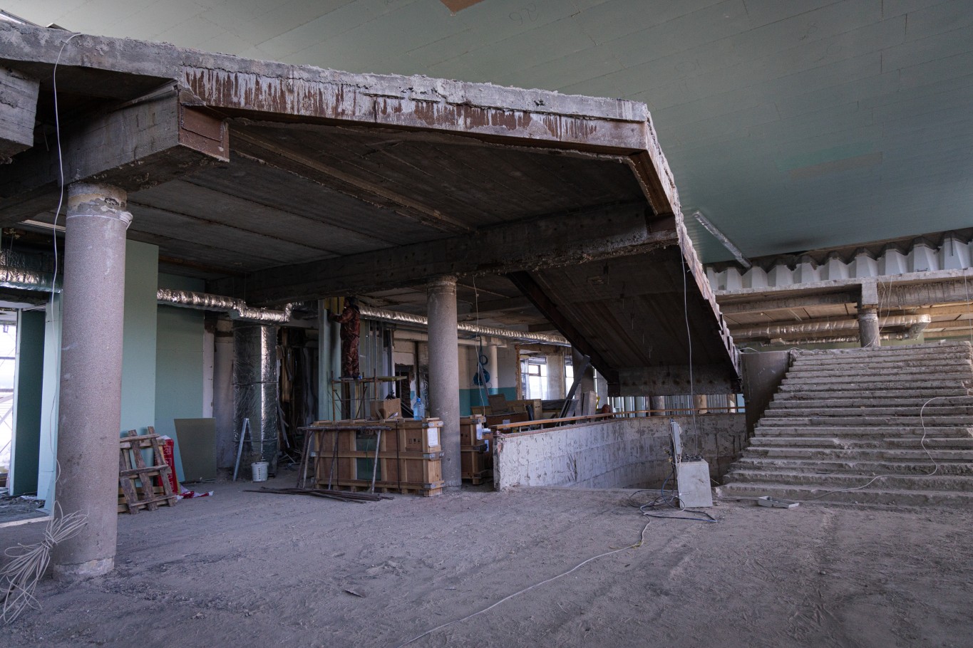 Реконструкция идет во всем здании, в том числе на цокольном этаже. Там разместят санитарные узлы, в том числе для маломобильных групп населения, а также комнату матери и ребенка и другие необходимые помещения.