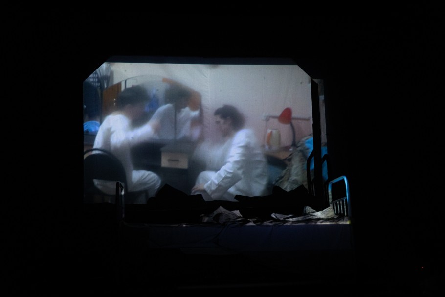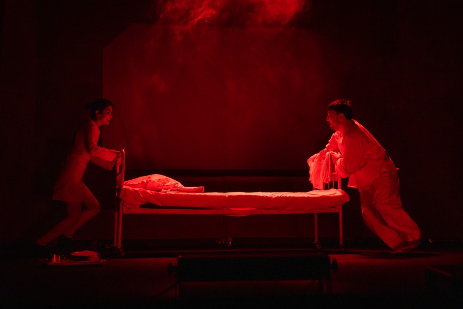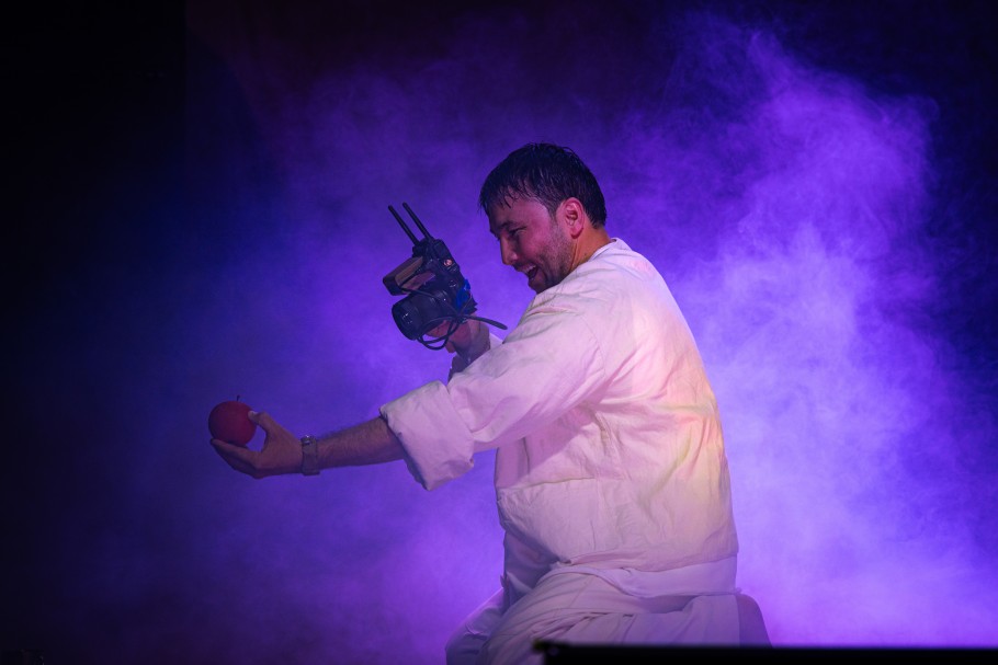 Еще один интересный прием – видеодневник. Если у Гоголя герой ведет записи, то в новой постановке он фиксирует свои мысли на камеру. Эти видеозаписи транслируются на задник сцены, усиливая эффект присутствия и подчеркивая современный контекст: безумие сегодня тоже имеет цифровое лицо.