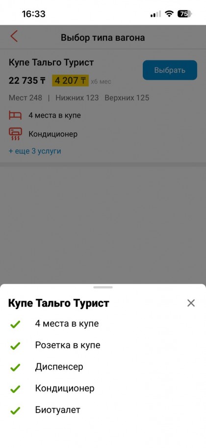 В разделе «Путешествия» приложения «Kaspi» корреспонденты «НК» обнаружили, что билеты можно купить уже сейчас – на 18 декабря. Стоимость поездки – 22 735 тенге.
