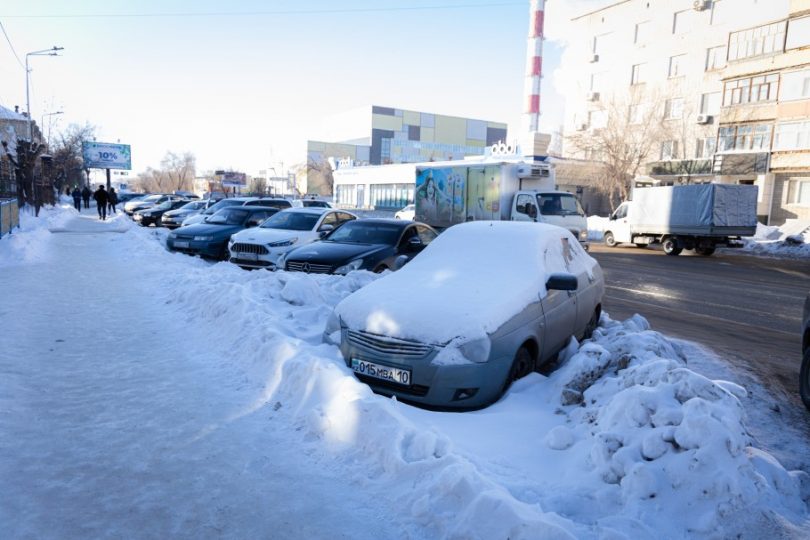Машины, оставленные на парковках и у обочин дорог, мешают очистке снега на улицах Костаная.