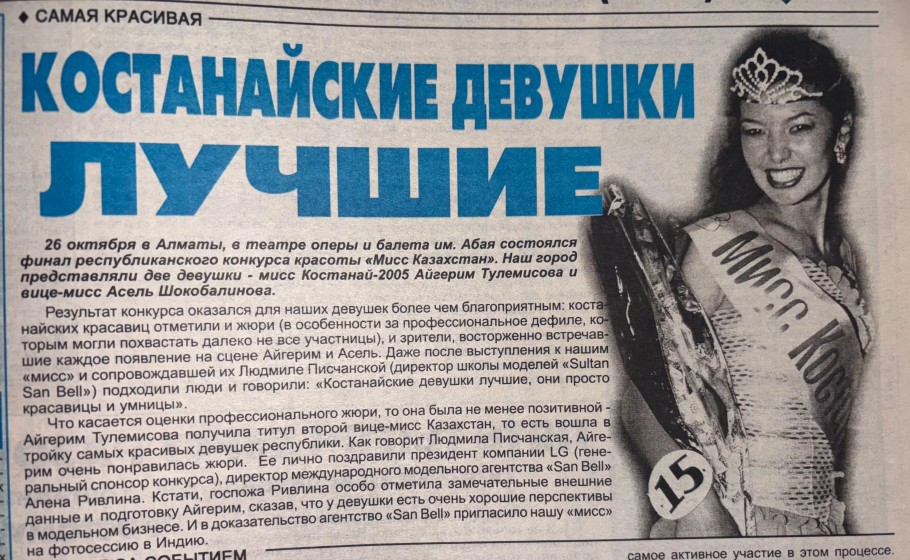 В соседнем номере за 27 октября 2005 года журналисты сообщали, что «Мисс Костанай-2005» Айгерим Тулемисова вошла в тройку лучших на конкурсе «Мисс Казахстан», став второй вице-мисс.