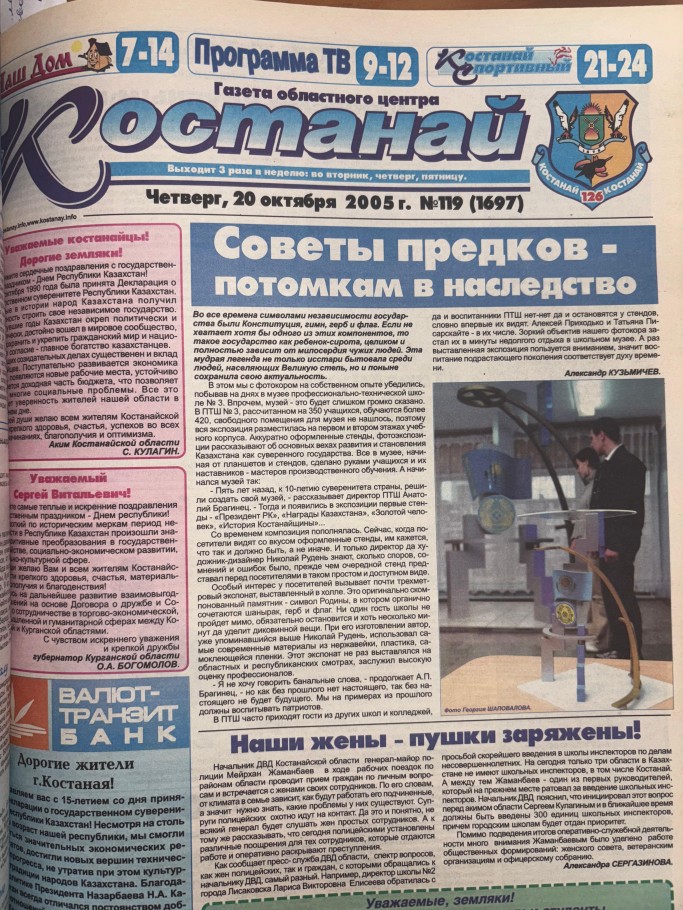 На этот раз мы пролистали страницы номера газеты «Костанай» (ныне — «Наш Костанай») от 20 октября 2005 года.