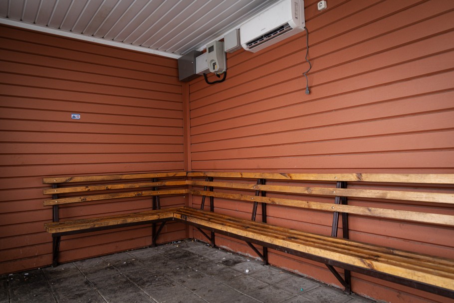 Запаха в павильоне не было, но батареи не работали. Внутри оказалось теплее, чем на улице, но прохладнее, чем в предыдущей остановке. Замок на двери также сломан. В павильоне расположился цветочный магазин. Продавец поделилась с нами, как обстоят дела.