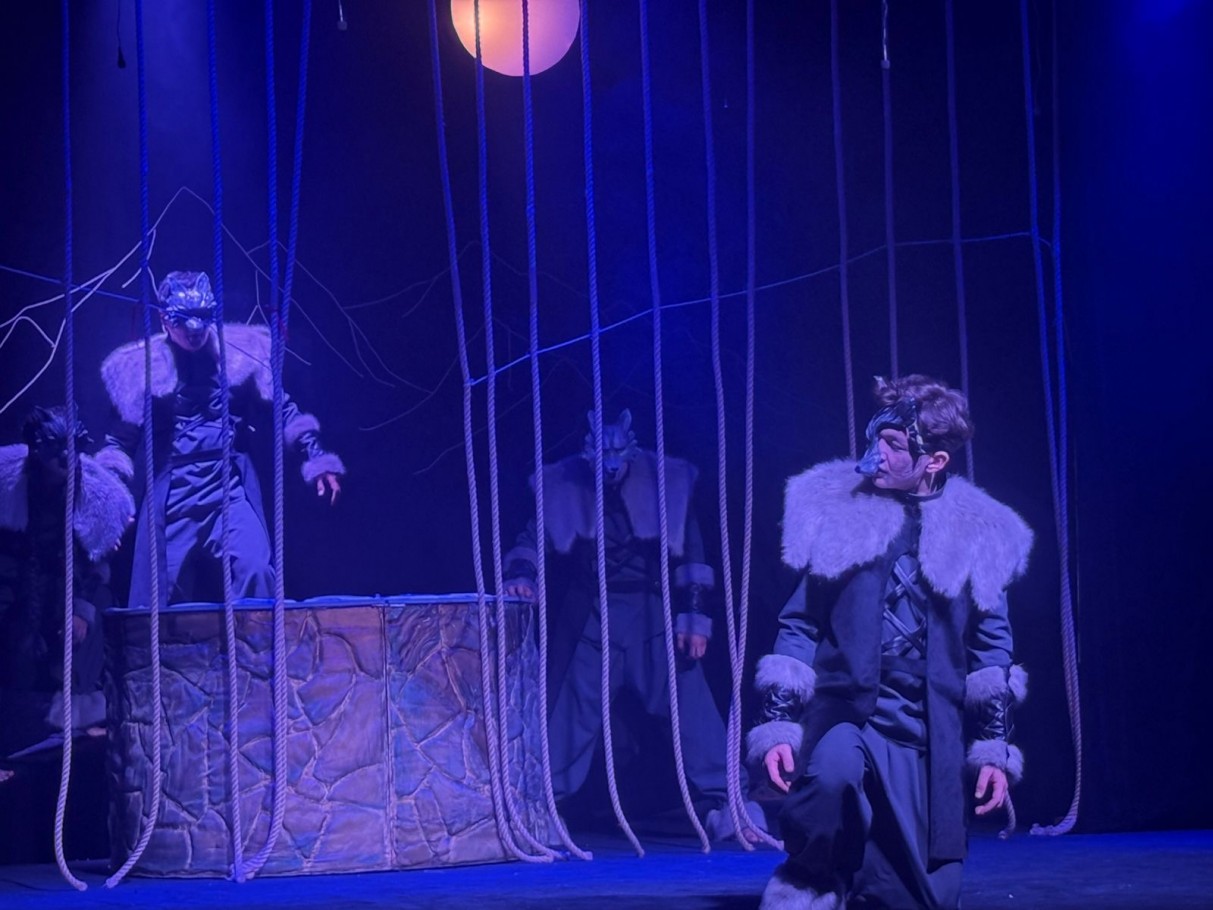 Қойылым барысында қасқырдың «екі әлем арасында» қалуы, яғни адам мен түздің ортасындағы арпалысы ерекше әсермен жеткізілген. Көксеректің ішкі жан қиналысы, өз болмысын таба алмай сенделуі сахналық шешімдер арқылы терең әрі әсерлі көрсетіледі. Адамға бауыр басқан Көксерек өзін ит сезінгенімен, тегін тануға деген ішкі үні оны табиғи жаратылысына қайта жетелейді.