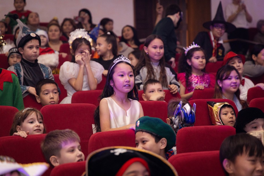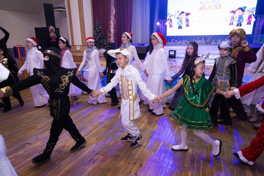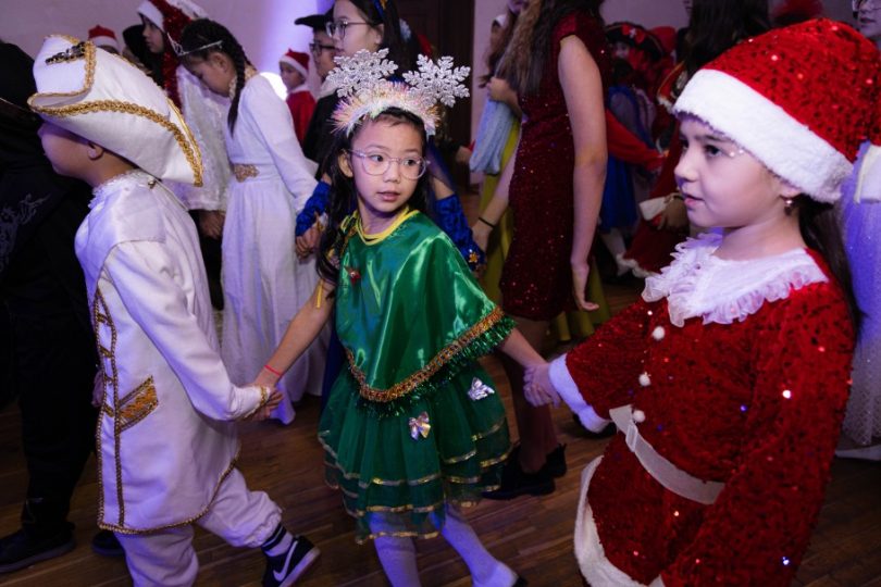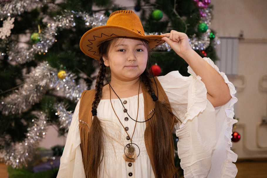 Юные участники праздника пришли в костюмах любимых героев и персонажей. В этот день рядом можно было увидеть Снегурочку, ковбоев и царицу Томирис – все они вместе встречали Новый год, создавая атмосферу настоящего волшебства.