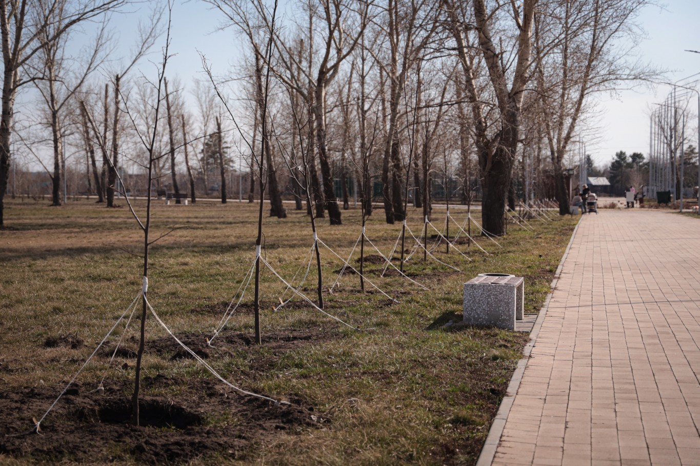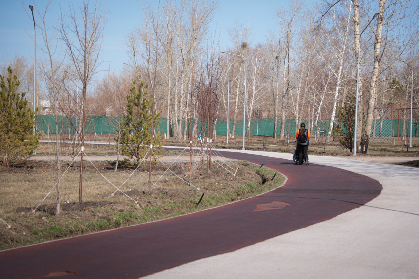 Вдоль дорожек уже готовится к цветению верба. Распушились и сосны, которые высадили в прошлом году по аллее, идущей от улицы Фролова. Всего тогда посадили 45 деревьев. Тем временем рябина, которую высаживали во время субботника осенью, еще только набирает цвет.
