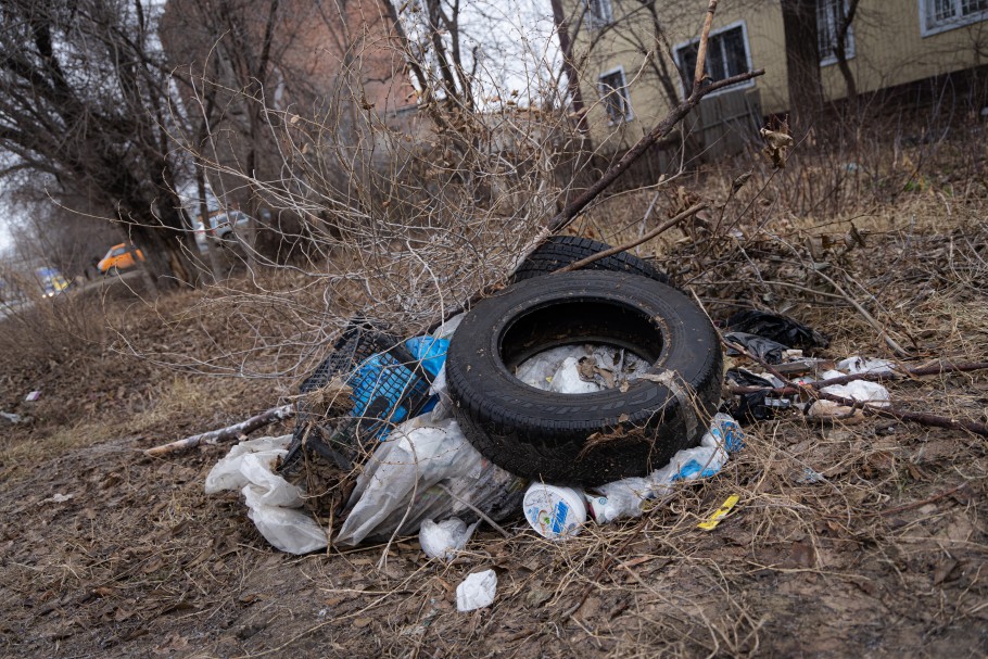 Подписчики «НК» в комментариях отметили, что настоящие залежи стихийного мусора – это лог со стороны улицы Дулатова. На момент рейда здесь было относительно чисто, по крайней мере, гор не наблюдалось, местами разбросаны пакеты, ТБО и спиленные ветки. Вероятно, мусор вывезли ранее, так как на земле остались следы от протектора шин крупногабаритной техники.