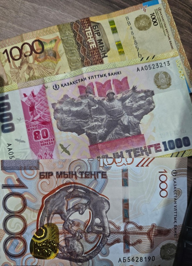 Кроме того, Национальный банк страны не раз выпускал новые серии денег. К примеру, к 80-летию Великой Победы на купюре «1000 тенге» изображена географическая карта РК, на которой размещены Мемориал славы в парке имени 28 гвардейцев-панфиловцев, коллаж из фотографий, олицетворяющих то время, Орден Отечественной войны, а на микрооптической защитной полосе — вечный огонь и летящие к небу журавли.