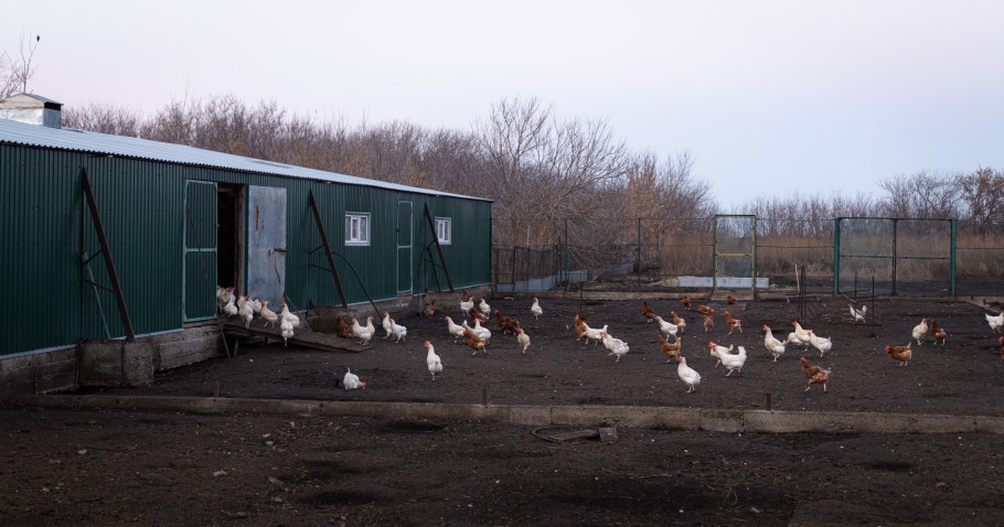 Территория небольшая – несколько птичников, загон для птиц, где они гуляют на свежем воздухе, склад и старые постройки, которые в будущем планируют реконструировать.