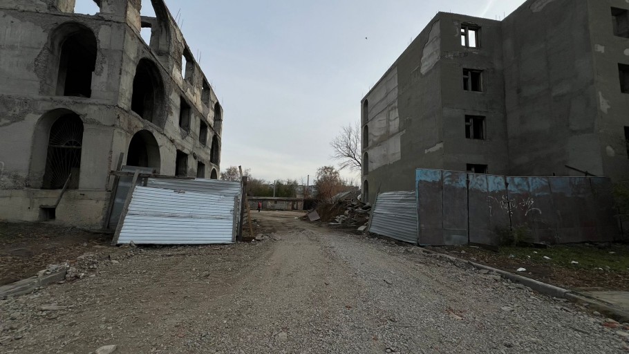 Уже не один десяток лет в районе магазина «Инмарт» наблюдается неизменная грустная картина, которую создают эти недостроенные дома: серые, мрачные коробки с пустыми оконными рамами, плюс мусор — не самый лучший вид для жилого микрорайона. Однако недавно корреспонденты «НК» увидели на этой территории активно работающую технику и людей.