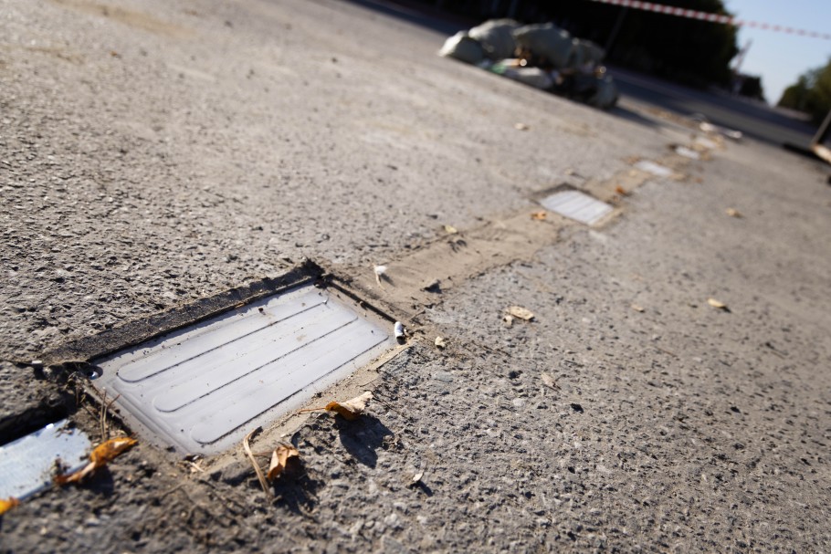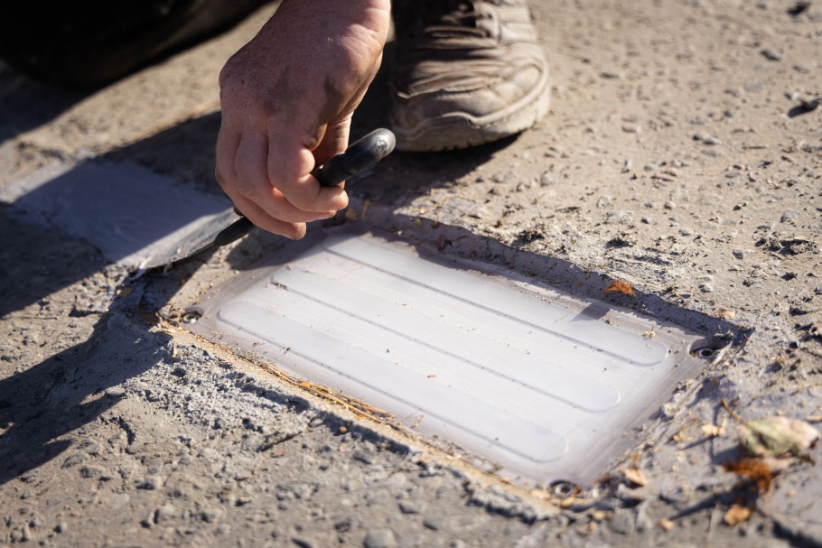На улице Алтынсарина, возле Казпочты, в дорожное полотно вмонтировали фонарики, которые будут гореть красным и зеленым светом.