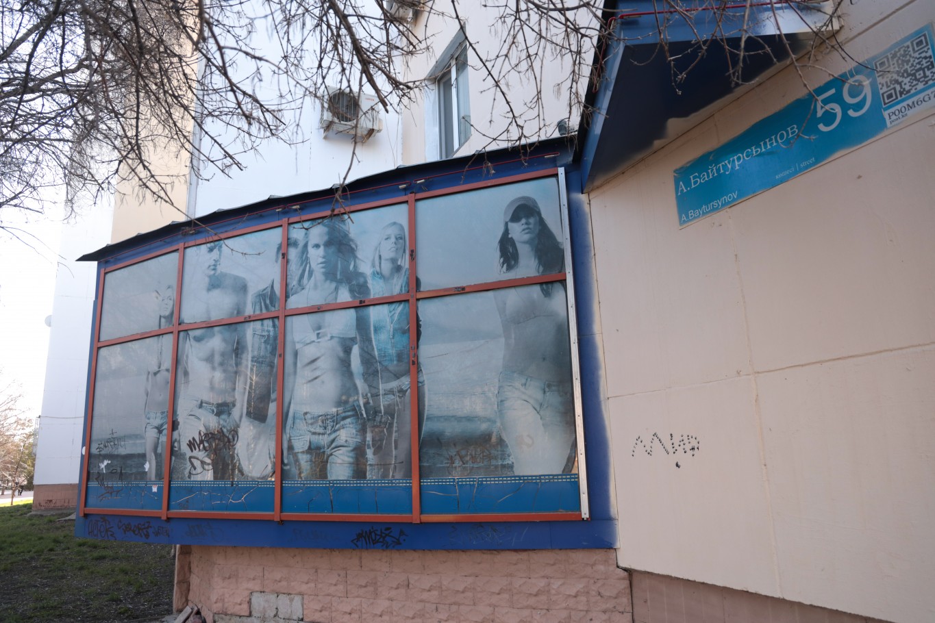 Одна из проверок прошла вчера, 6 апреля. Началась она с магазина «Джинс Максимум», расположенного в центре города на пересечении улиц Тәуелсіздік – Байтурсынова. Внешний вид торговой точки, по словам участников мониторинга, оставляет желать лучшего: буквы вывески висят на проводах, наклейки на окнах выцвели, а по периметру разбросан мусор – окурки, сухие листья. Кроме того, отсутствует доступ для маломобильных групп населения.