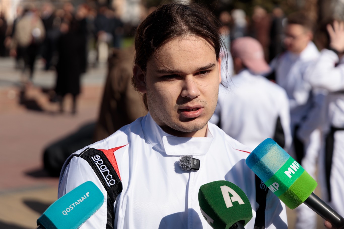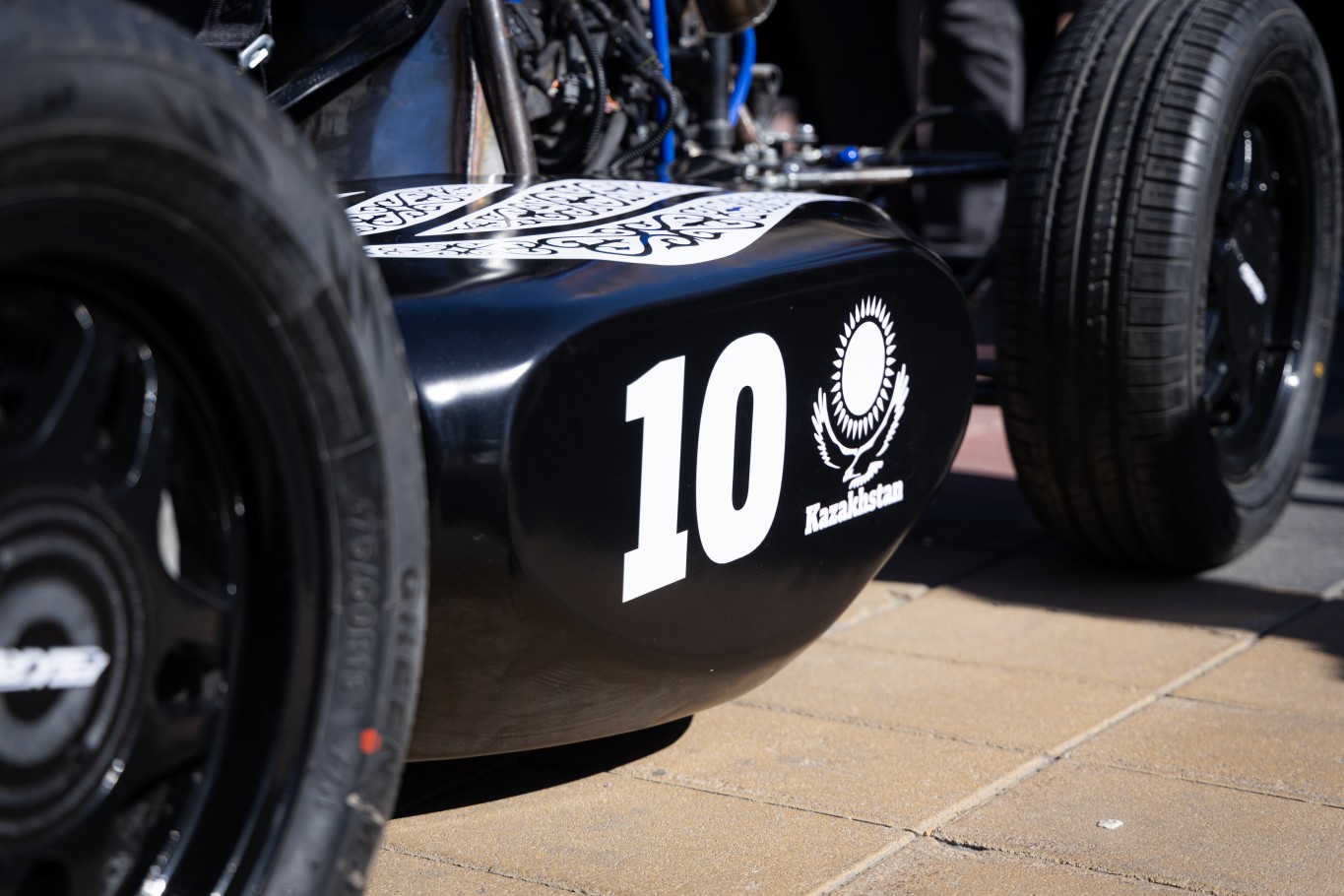 Сам болид сразу притягивал взгляд. Черный, глянцевый, с обтекаемыми формами, он выглядел как настоящий гоночный автомобиль. Его тестовое название – Т-800, назвали в честь Терминатора. На корпусе болида изображена символика с солнцем и беркутом, напоминающая элементы флага Казахстана. Прохожие останавливались, и фотографировали авто. Даже те, кто спешил по делам, не могли пройти мимо. Когда пилот занял место, двигатель ожил, и болид сделал несколько кругов по площади, после чего вернулся к зрителям. К слову, сама команда студентов выглядела не менее эффектно, на запуск они пришли в белых гоночных костюмах, и выглядели, как настоящая профессиональная команда.