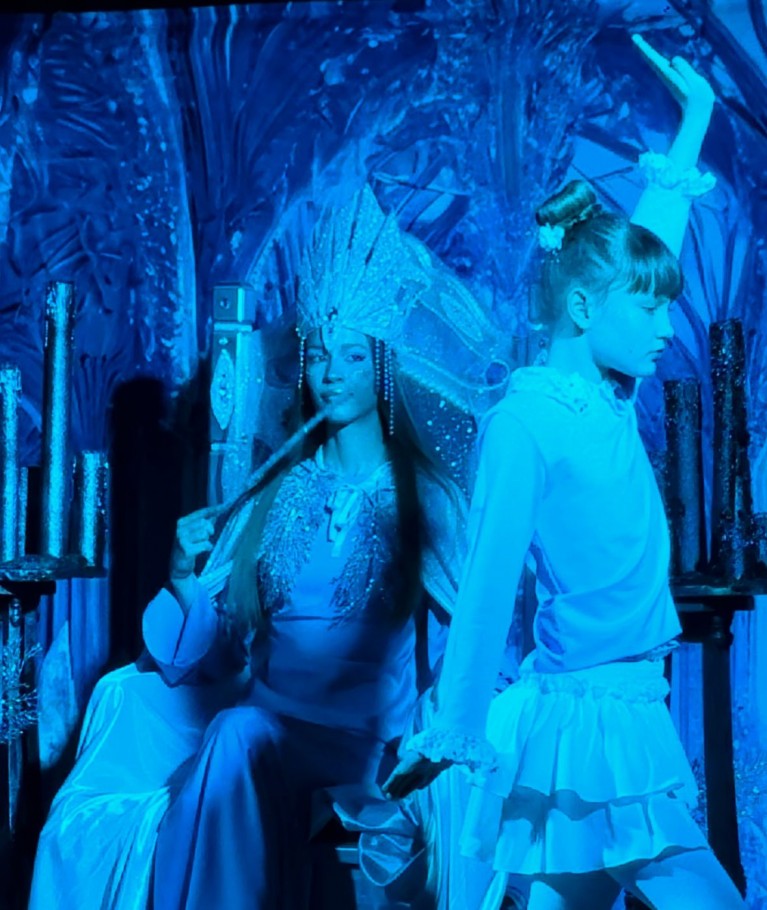 После музыкального вступления зрителям представили основную рождественскую постановку. В центре сюжета – история двух сестер, которые поссорились в рождественский сочельник. Одна из них оказывается в ледяном царстве, а другой предстояло пройти тернистый путь, полный испытаний, чтобы спасти родного человека. Через сказочную форму юные артисты говорили о прощении, любви, жертве и силе семейных уз – темах, особенно близких рождественскому времени.