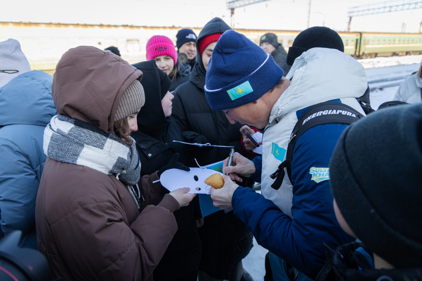 Олимпийцев ждали с музыкой и традиционным обрядом шашу. Спортсменов обнимали и приветствовали родные и близкие, друзья и тренеры. Многие делали фото на память и просили у лыжников автографы. На перроне царила теплая, несмотря на холодную погоду, атмосфера.