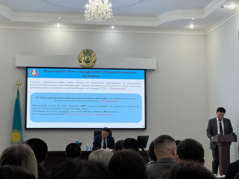 — В декабре 2024 года нами была проведена проверка по вопросу полноты исчисления платы за размещение наружной визуальной рекламы, в результате которой был произведен визуальный осмотр 11 улиц. Выявлено 1059 объектов рекламы, по которым в бюджет не внесена плата на сумму 9,9 млн тенге. На текущую дату требование исполнено частично: поступило 4,8 млн тенге по 386 объектам. По остальным 673 объектам потери местного бюджета составили 5,1 млн тенге, на сегодняшний день оплаты не поступило, — сообщил Кожуков.