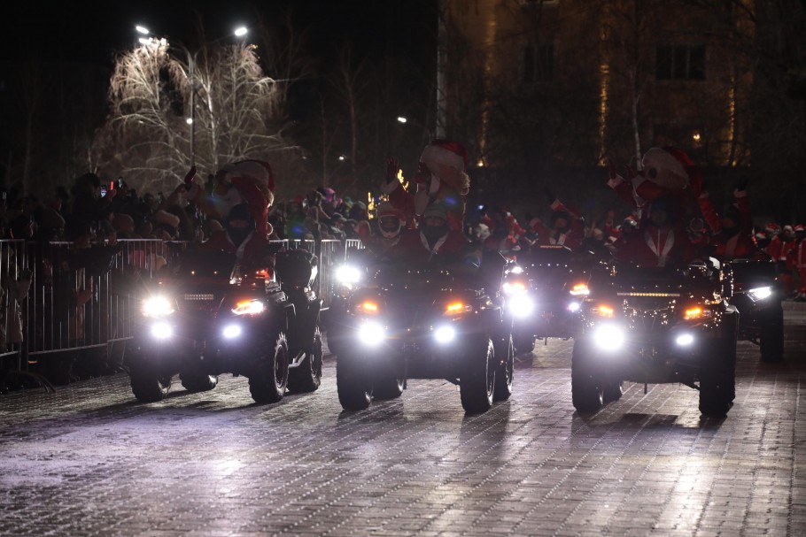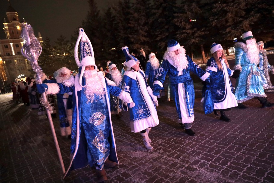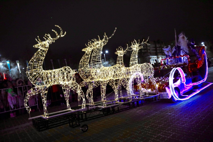 Непосредственно перед зажжением на площади прошел парад Дедов Морозов и Снегурочек. Волшебные герои проехали по площади на санях, вызвав особенно бурную реакцию у детей. В шествии приняли участие несколько десятков сказочных персонажей.
