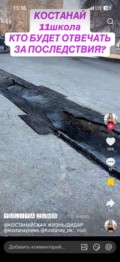 В школьном дворе в Костанае обвалился асфальт