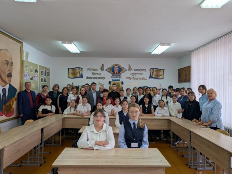 Школа для проведения встречи тоже выбрана не случайно. Она носит имя заслуженного учителя Казахской ССР, организатора новых школ в селах, автора первого казахского романа Спандияра Кобеева. Перед встречей с учениками директор школы Айман Нурпоисова провела для поэтов небольшую экскурсию. В учебном заведении с казахским и русским языками обучения занимается более 300 детей.