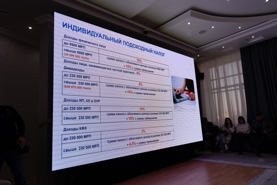 Он также отметил, что вводится прогрессивная шкала индивидуального подоходного налога. Доходы до 36 млн тенге будут облагаться по прежней ставке 10%, а суммы свыше – по ставке 15%. При этом пенсионные выплаты освобождаются от налогообложения, за исключением случаев наследования или выезда за пределы страны.