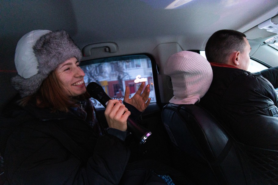 Корреспонденты «НК» тоже стали гостями необычного такси и даже спели трендовую песню «Я самая» исполнительницы Mia Boyka. Приложение поставило нам оценку «С» — не самый высокий балл, так, средненько. Ну, надеемся, что хотя бы журналисты мы хорошие.