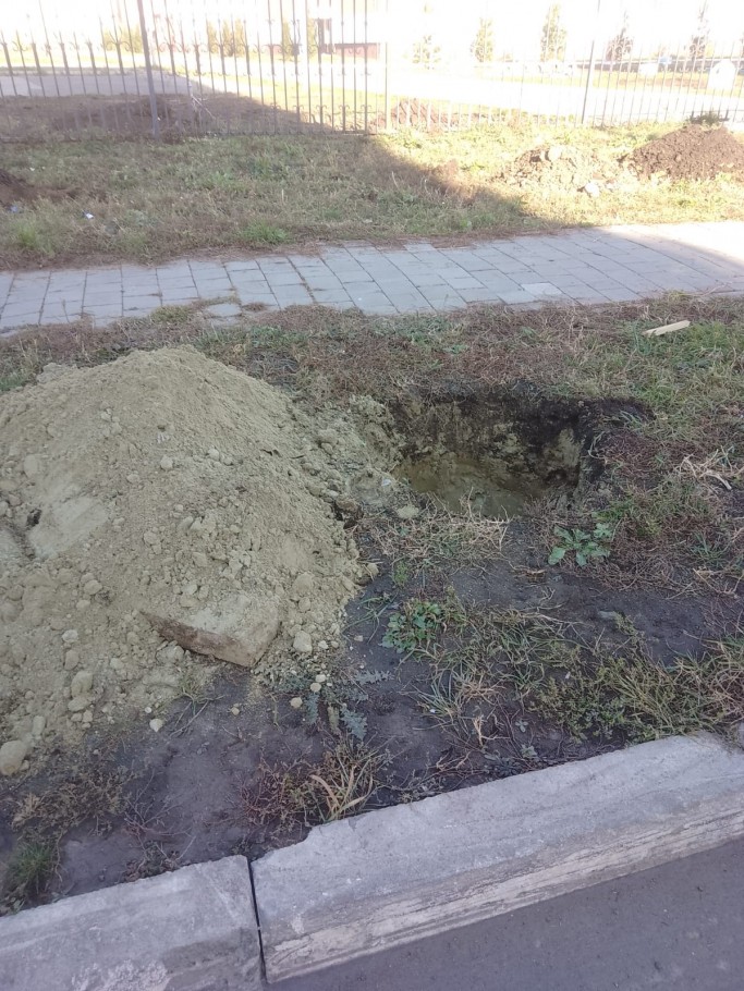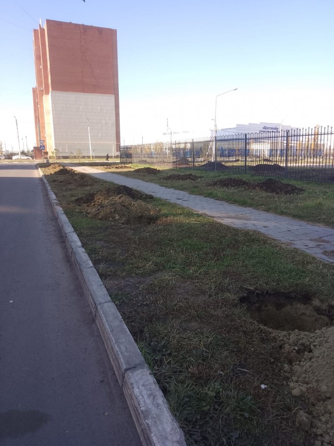 — Это территория школы №29 в микрорайоне «Аэропорт». Со вчерашнего дня выкопали ямы под сосны прямо над теплотрассой. Плюс, в таком положении сосны будут закрывать обзор дороги — особенно для детей. Зимой они создадут проблемы при уборке снега. Почему бы не посадить сосны ближе к забору школы? Там ведь есть место, — отметил мужчина.