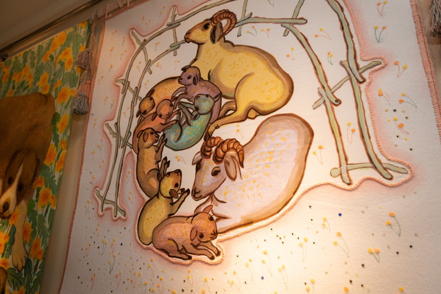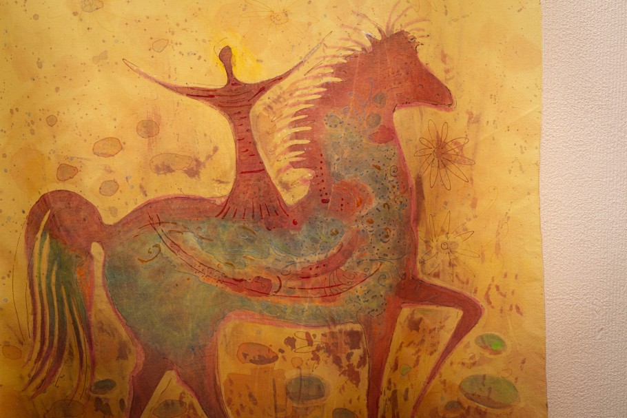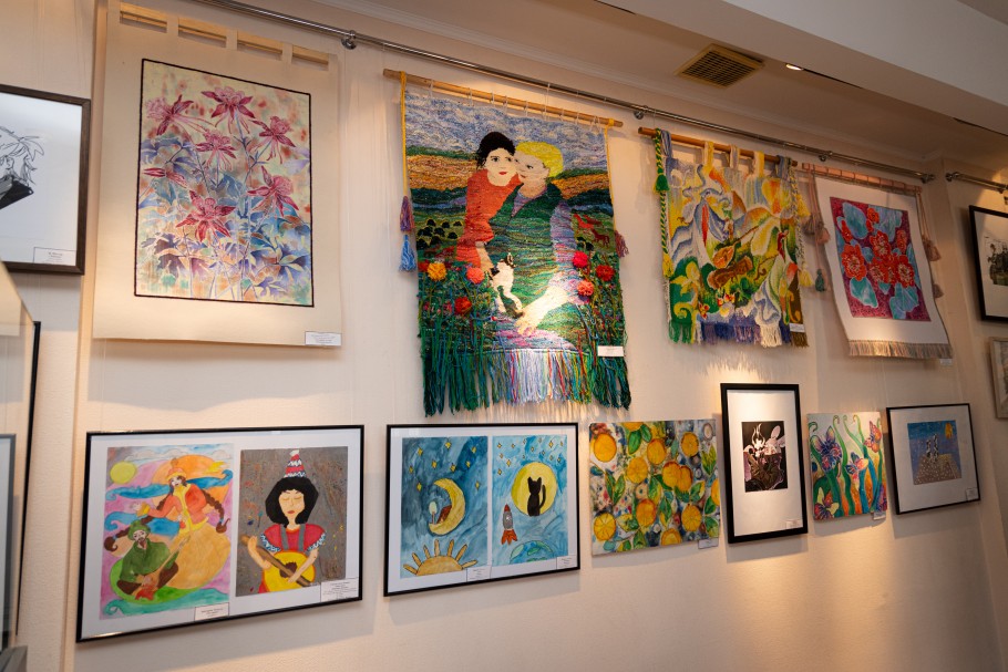 Здесь представлены работы художников Баян Баталовой, Лейлы Аби, Динары Кипшакбаевой, Инабат Жуматаевой, Тазагуль Байтуриной, а также их воспитанников.