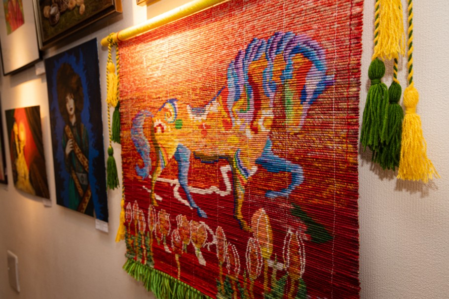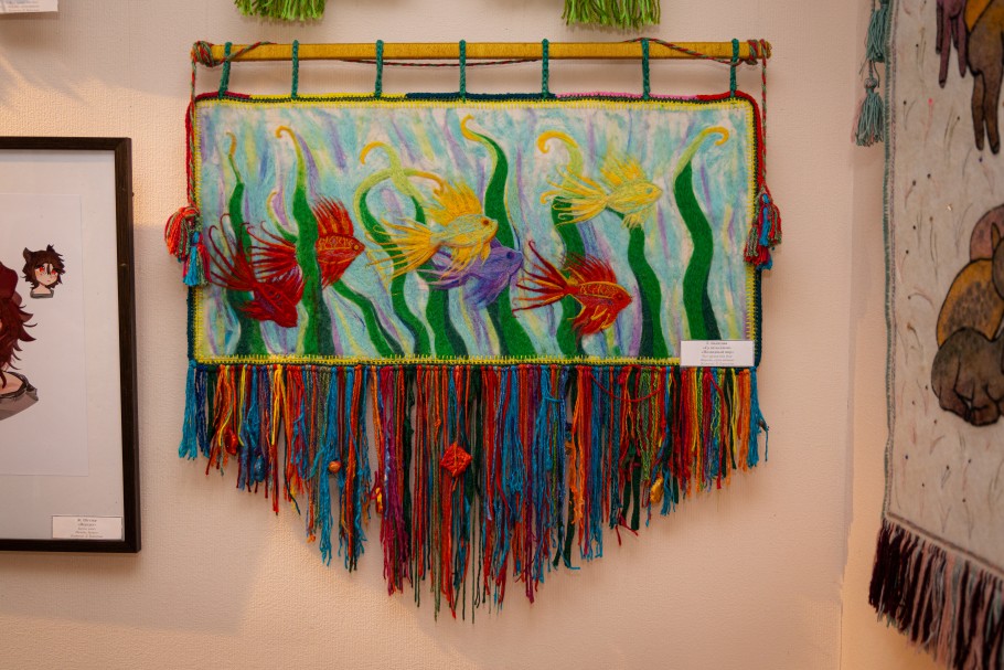 – Здесь также представлены работы моих учеников. Им 16–17 лет. Тематика наших картин всегда связана с национальным стилем, – рассказала Лейла Аби. – Занимаемся ковроткачеством, валянием войлока, ткачеством, гобеленом. Это всегда актуально и хорошо сказывается на развитии мелкой моторики у детей, а взрослым полезно как хобби.